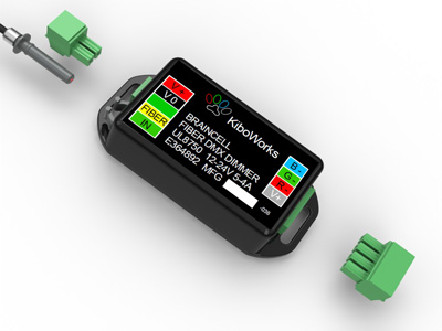 The Braincell is a multi-platform control solution which accepts DMX512, 0-10V, or Fiber DMX data and output 3's independent channels of pulse width modulated signals with a common UL class 2 (<100 Watt) V+