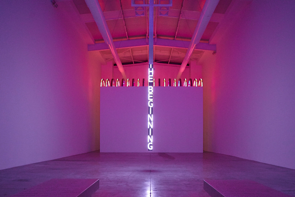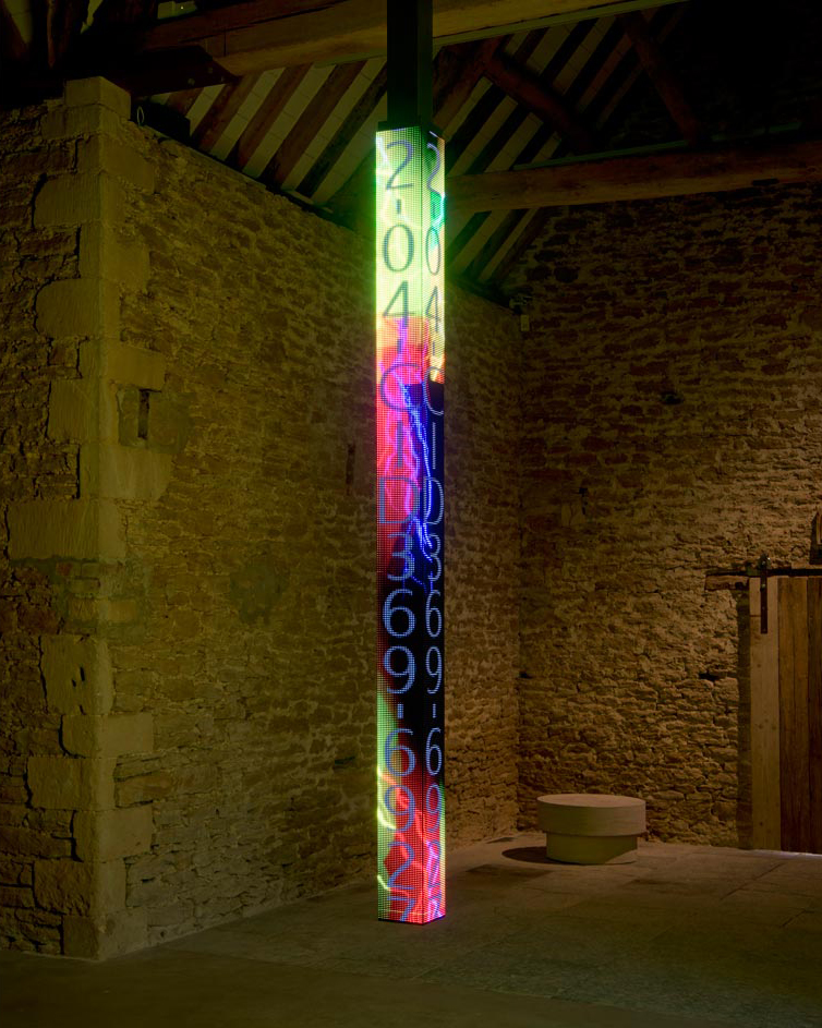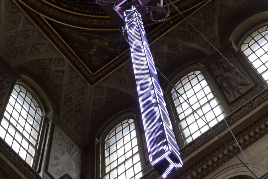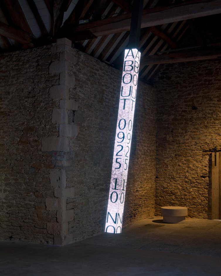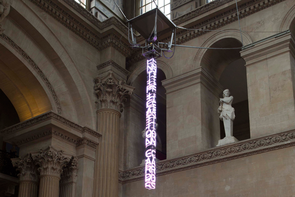 a robotic arm suspended from the gallery ceiling. For this work, Holzer