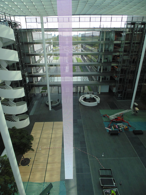 the atrium at HDI-Platz 1 – partly in parallel, partly alternating.