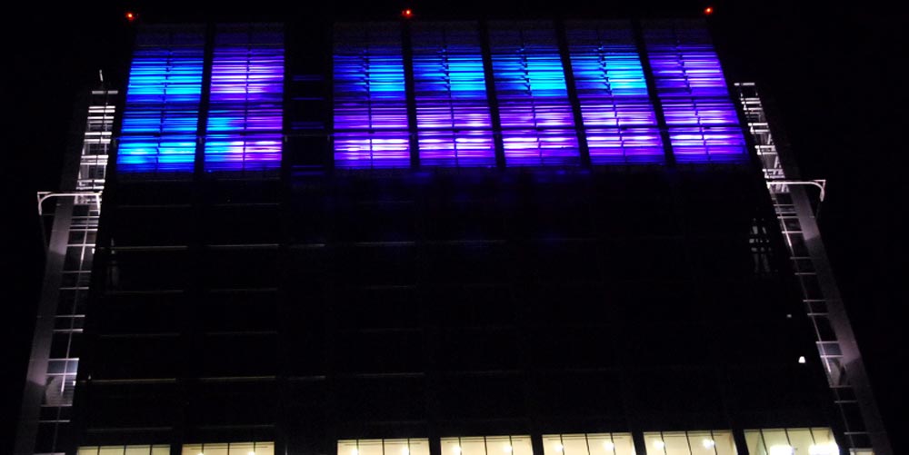 architectural lighting facade. The massive light sculpture crowning