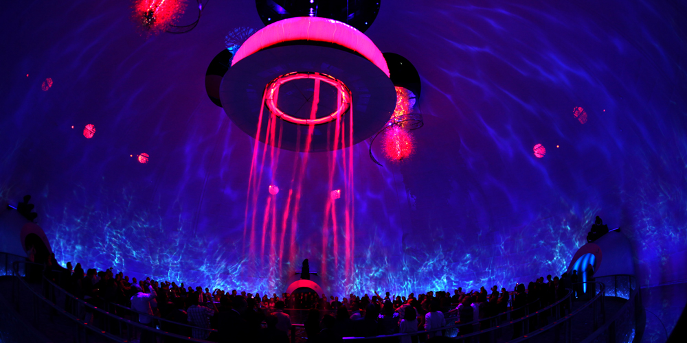 immersive show on the inside of the huge 360-degree domed Bubble Theater
