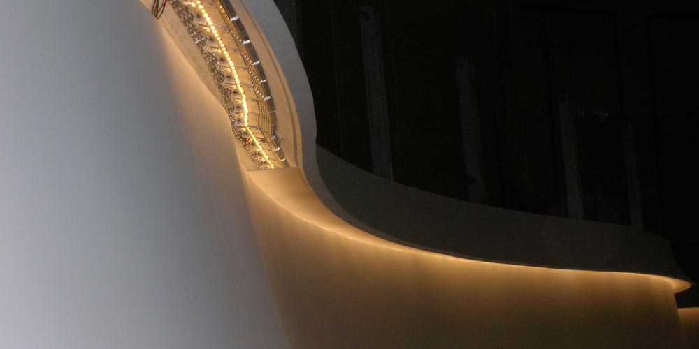 lobby chandelier. 250 LEDs housed in diffusers shaped like candlelight