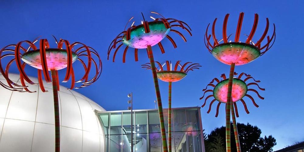 the Pacific Science Center. 5 giant solar flowers absorb the sun´s
